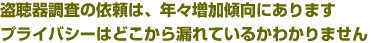 電気街やネットで意外とあっさり手に入ってしまう盗聴器。どこから狙われているかわからない盗撮。いずれも近年になって被害が急増している犯罪です。